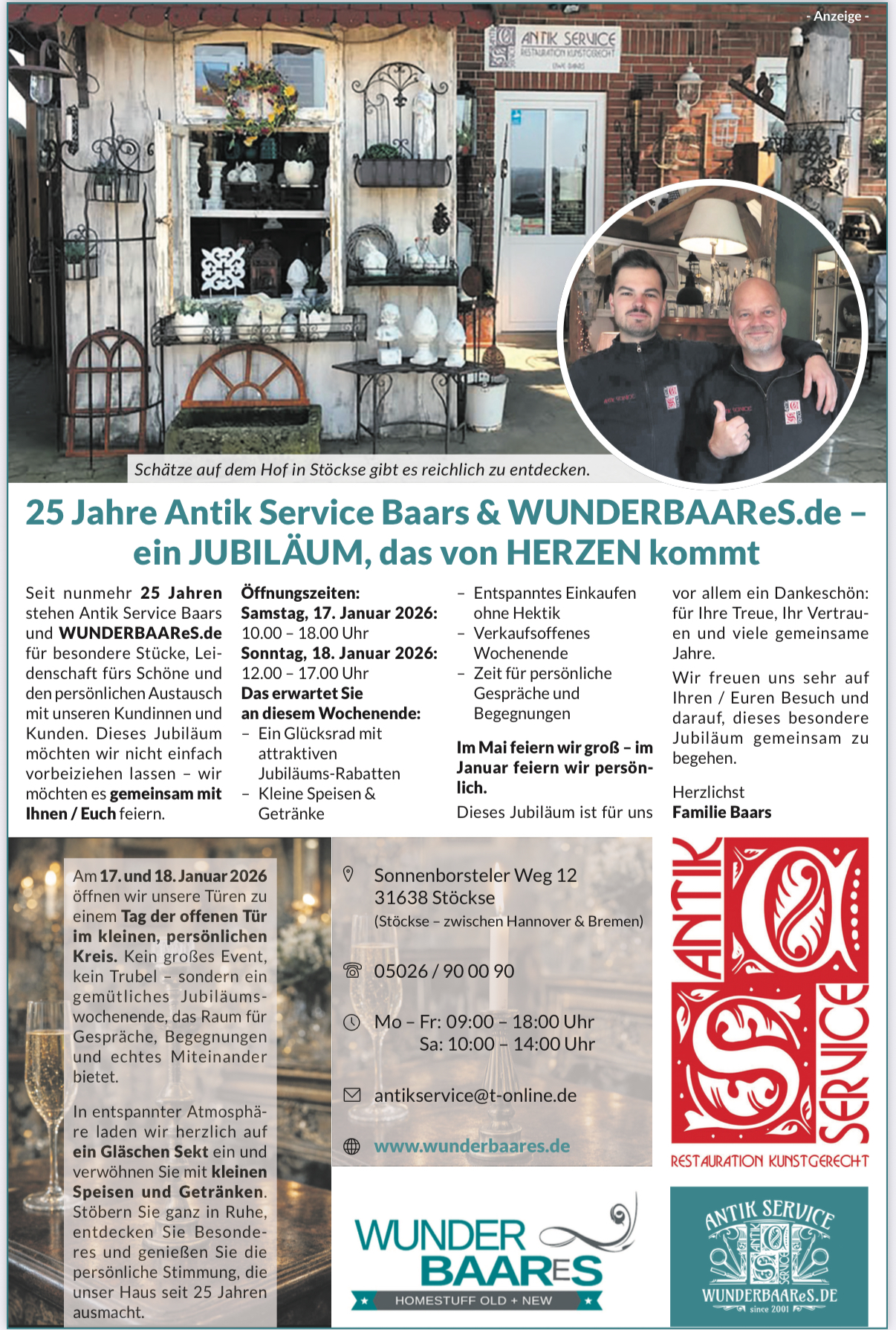 Kommt vorbei, feiert mit uns 25 Jahre Antik Service Baars und erlebt